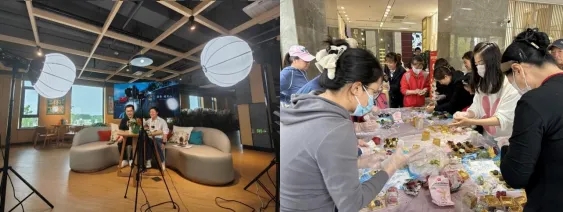 长春营销管理中心副总经理做客直播间(左) “月圆中秋 情满家园 ”中秋节社区文化活动(右)