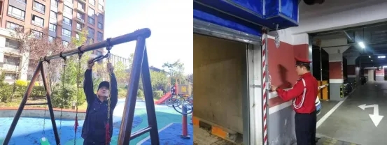 物业现场工作人员对小区设备设施进行调试维护